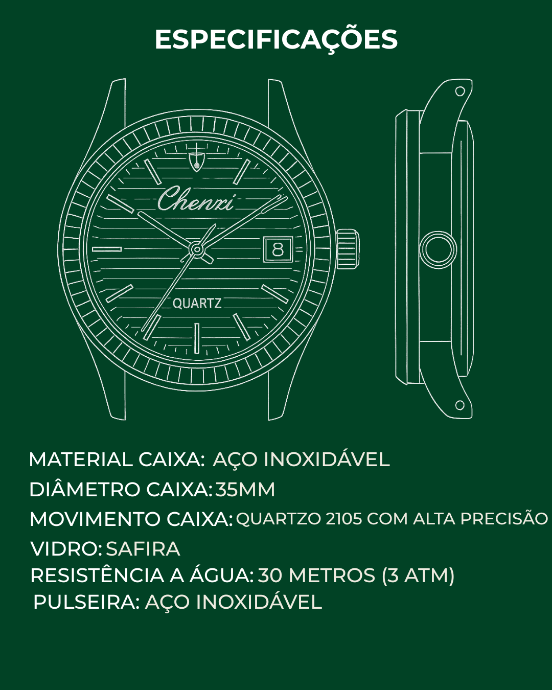 Elegância e resistência em um único relógio. Perfeito para quem não abre mão de estilo, sem comprometer a performance.