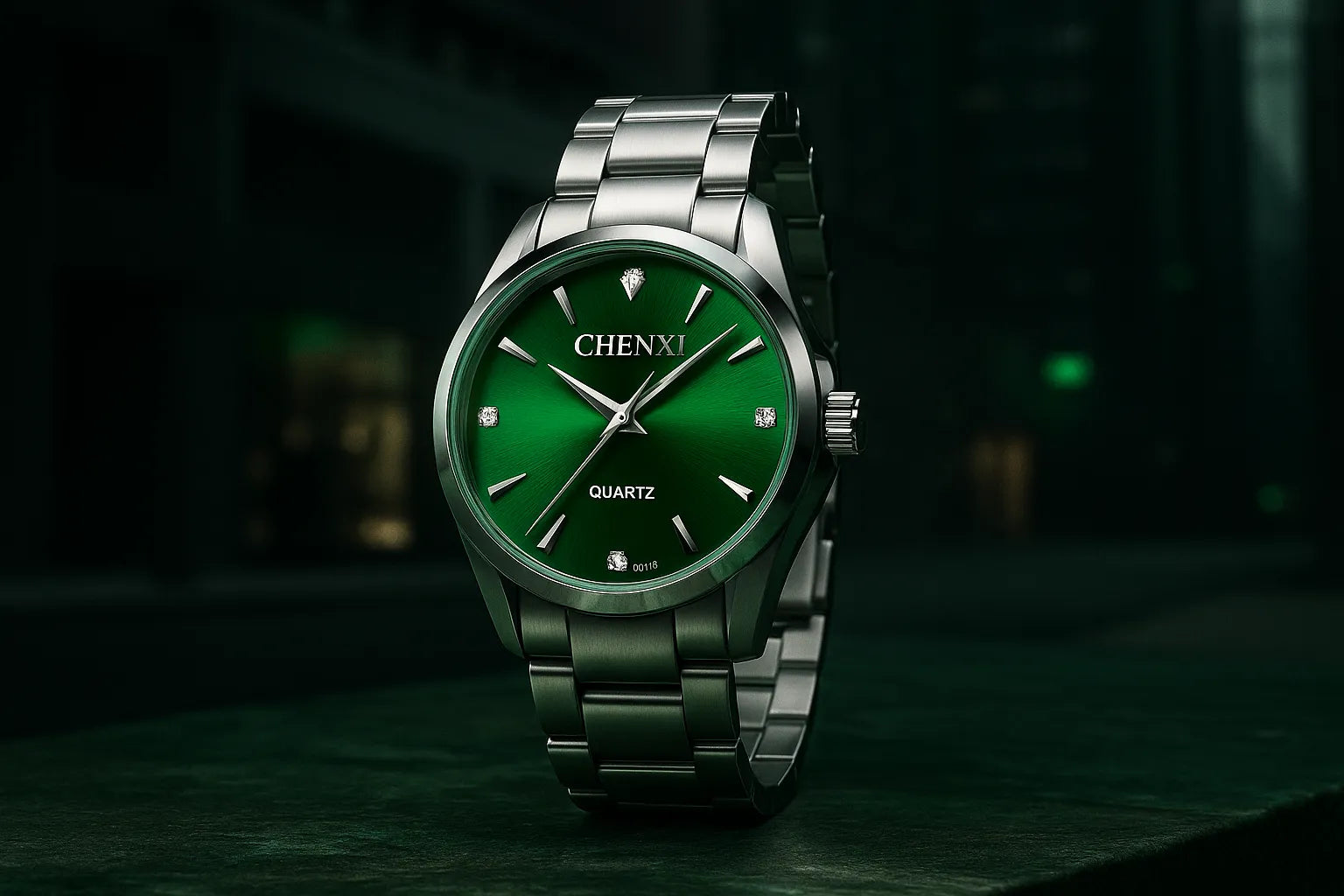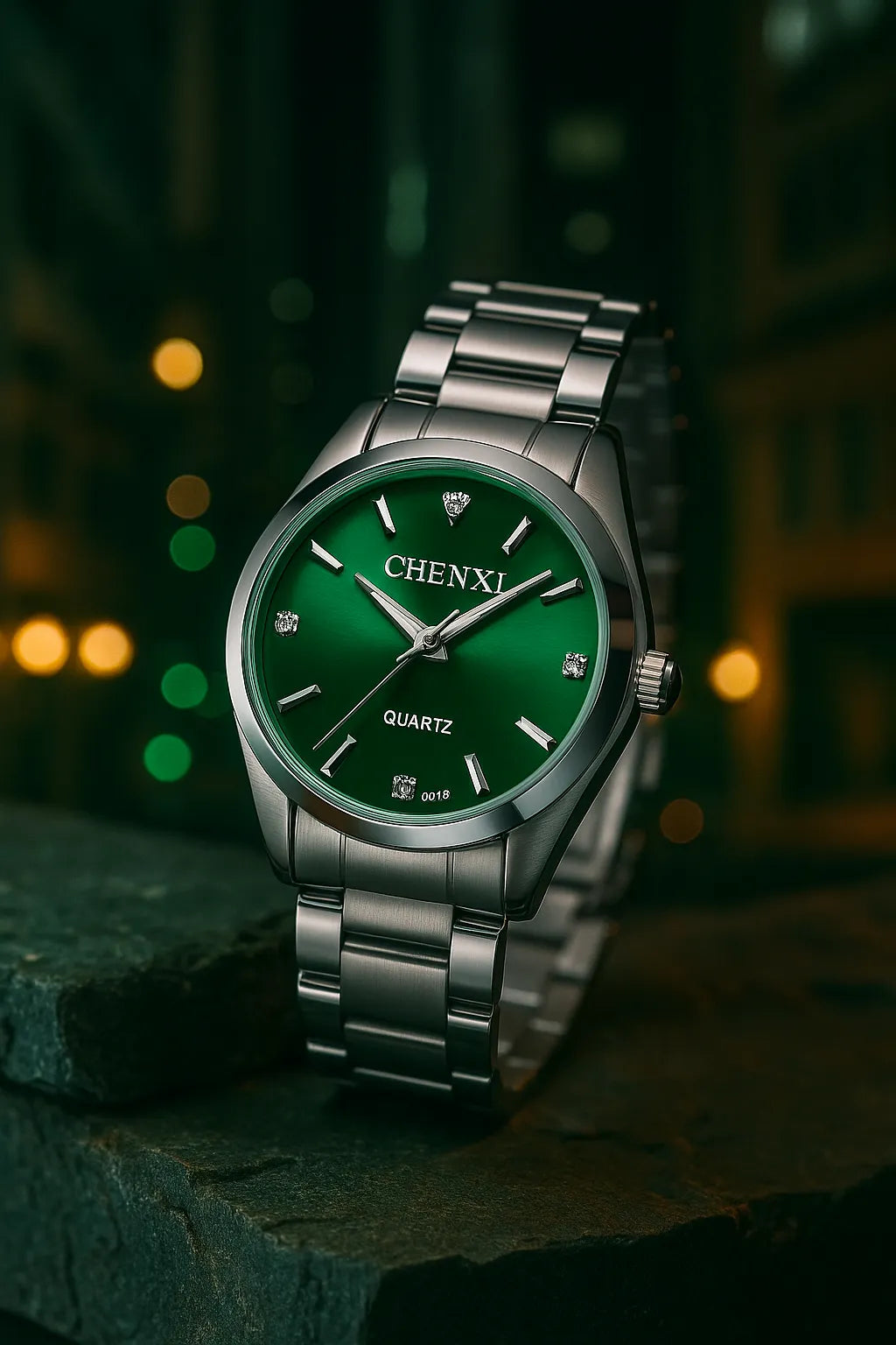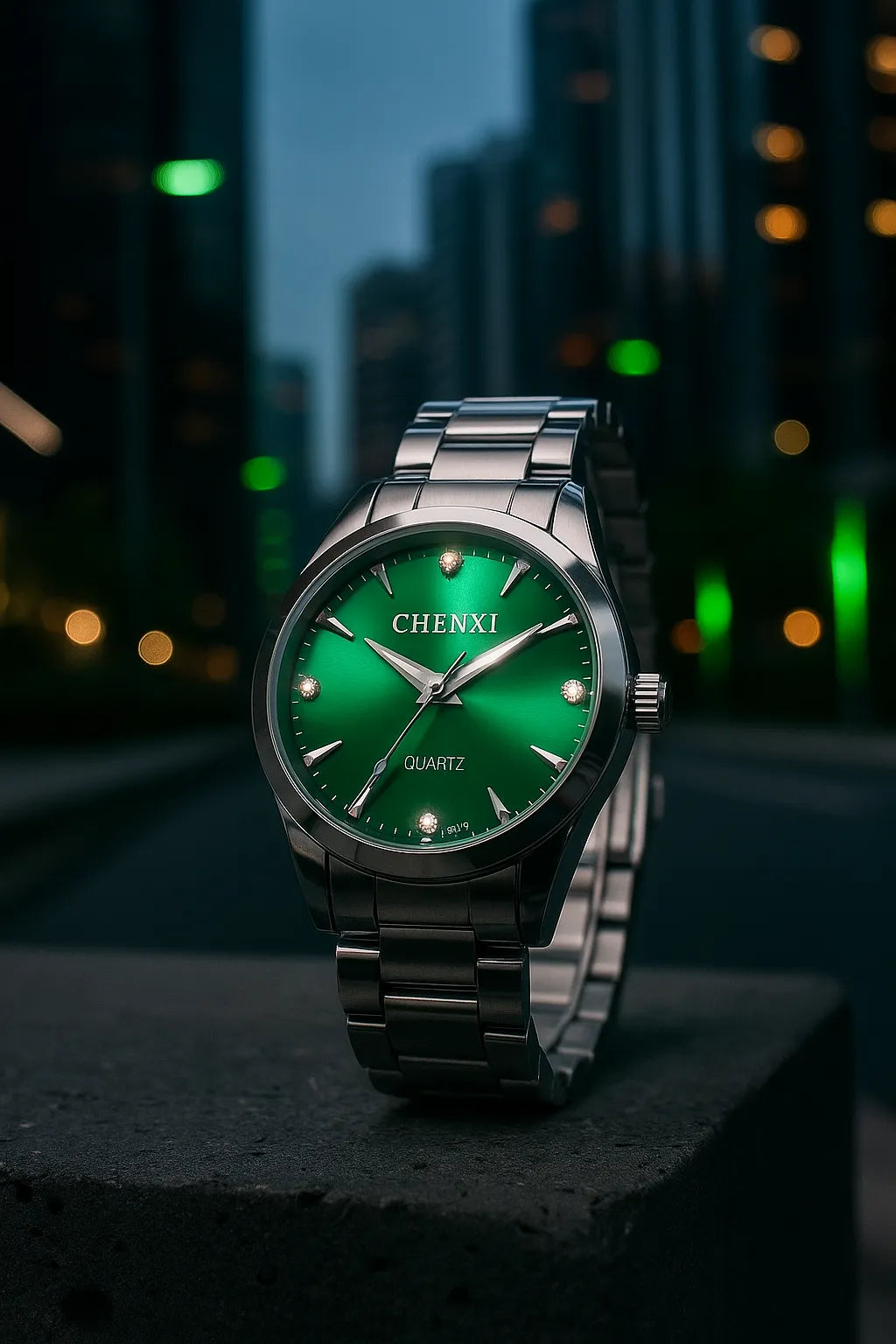 O verde vibrante do mostrador se destaca com sofisticação, enquanto a pulseira de aço confere resistência e versatilidade. Axis Slim é feito para quem sabe que o verdadeiro luxo está na simplicidade.