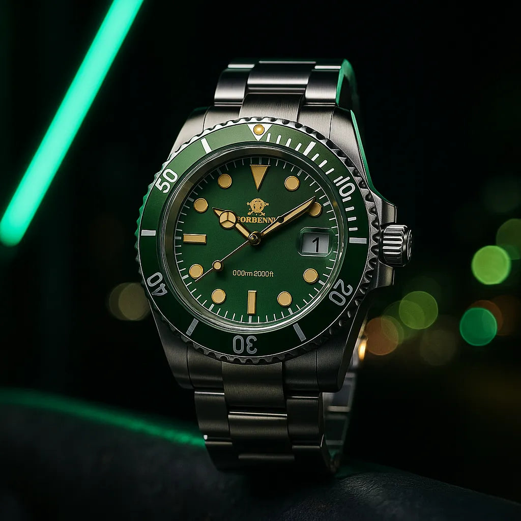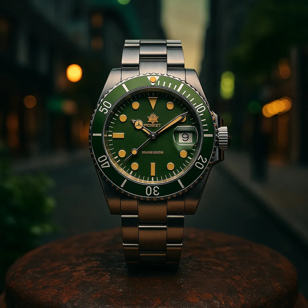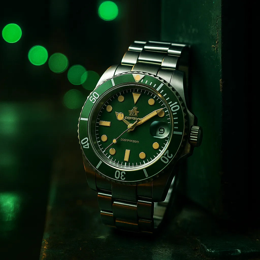 O mostrador verde fosco e os detalhes marcantes entregam exatamente o que você precisa: atitude que não pede permissão.