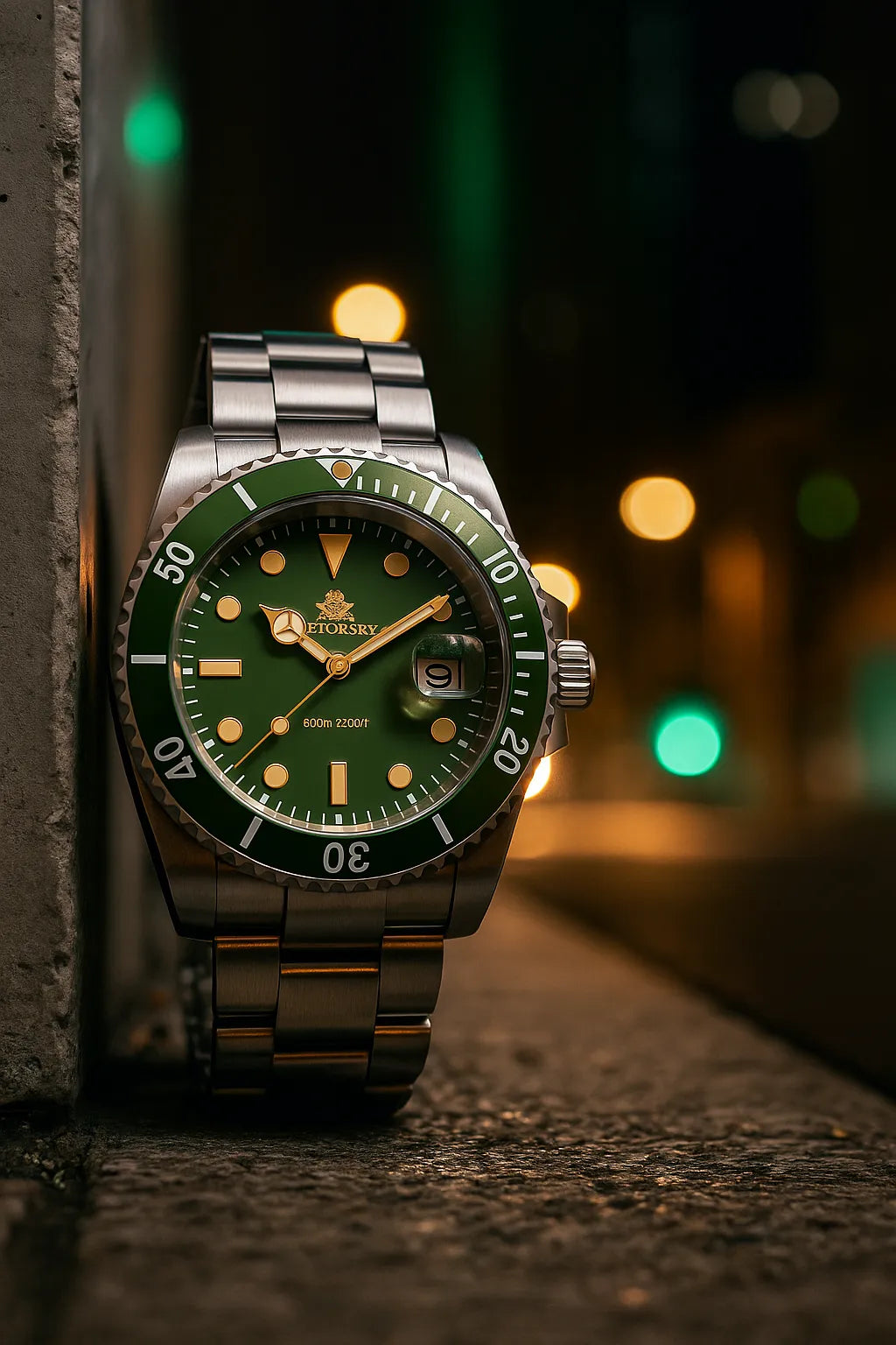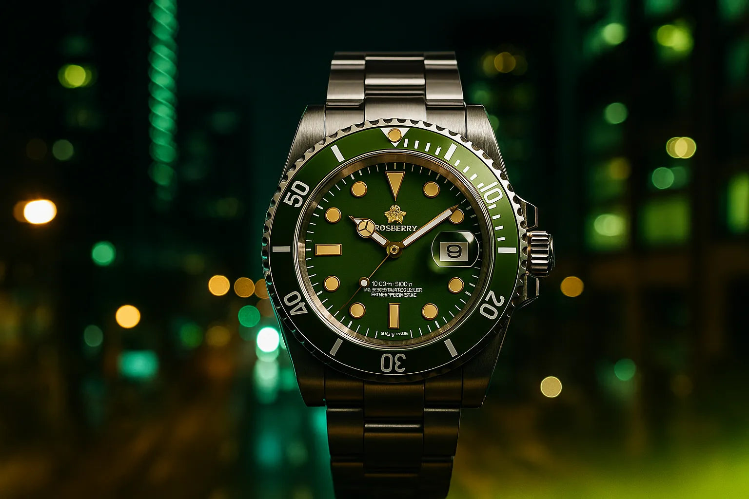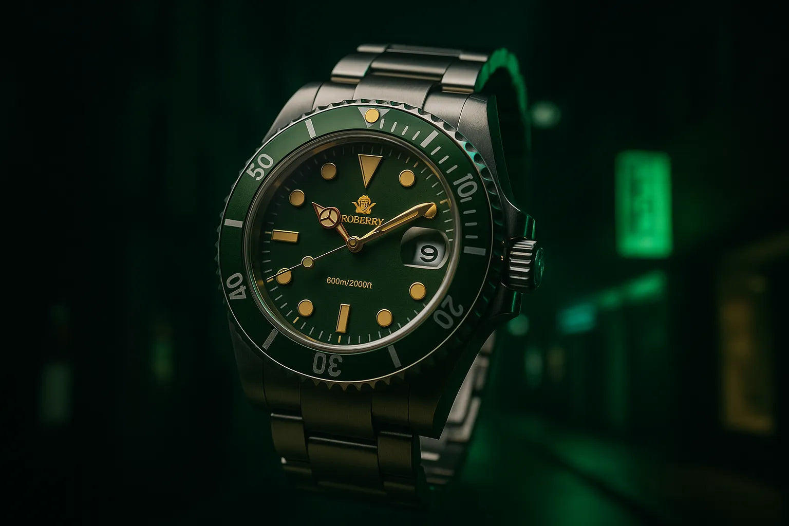 O mostrador verde fosco e os detalhes marcantes entregam exatamente o que você precisa: atitude que não pede permissão.
